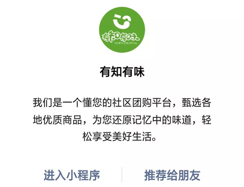 據了解,有知有味小程序是在2019年1月3日完成微信認證,在頁面上有“有知有味社區團購”的字樣。
