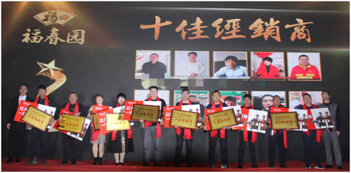 會議中,福春園為2018年度優秀經銷商進行了盛大的頒獎儀式,給他們頒發了獎牌、獎杯以及獎品。