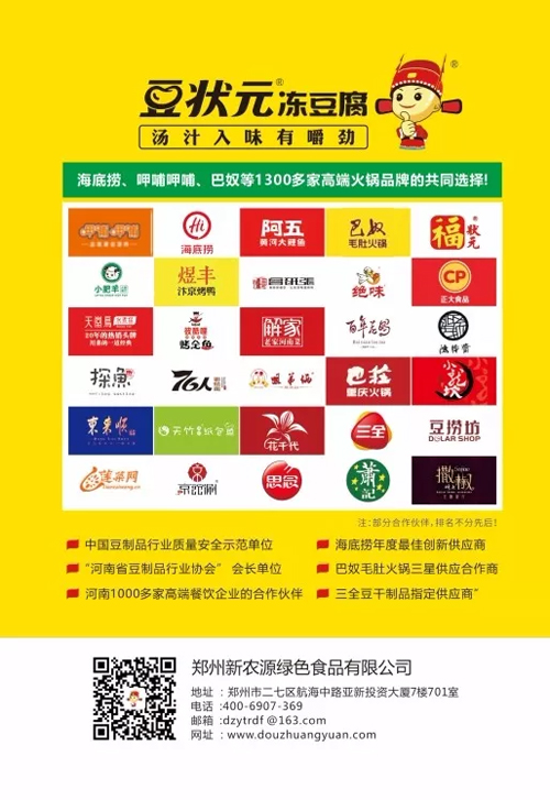 如今,在成功牽手1300多家高端火鍋餐飲后,“豆狀元”又有了新的夢想,那就是與全國的冷凍食品經銷商一起,讓更多消費者吃到安全美味的凍豆腐產品。
