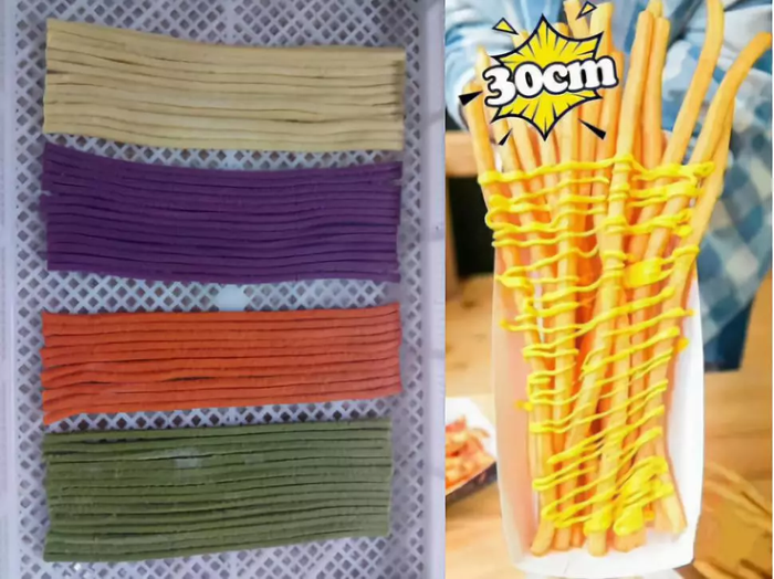 諸城福臨食品現主要生產30公分網紅超長大薯條(尺寸可定制)。現有原味、紫薯、海苔、香辣多種口味。適用:漢堡店、雞排店、小吃一條街、人流量大的地方均可。現全國招商!